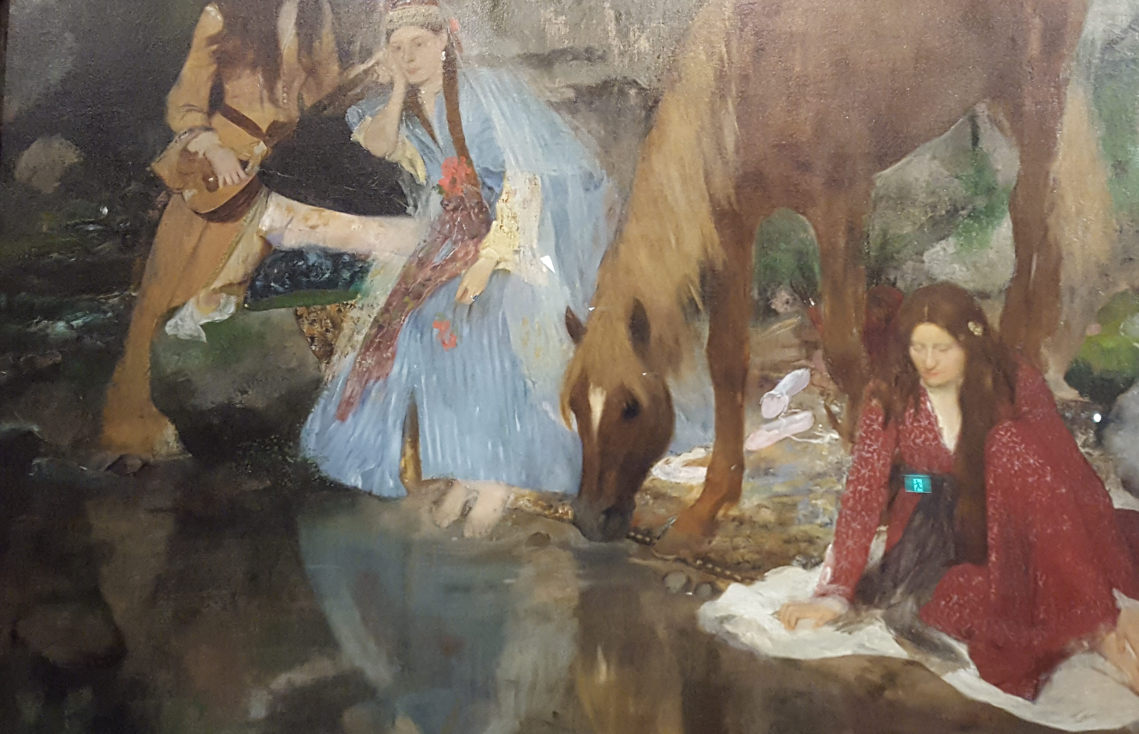 Degas could be seen as a kind of proto-ethnographer, depicting in detail the private worlds of ballet dancers, everyday women and also, horses and horse racing. That may do the ‘art’ in his works an injustice, even as it highlights his observational skills. His dancers and nudes are going about their business of living. They look like candid ‘shots’. They aren’t ‘sexy’ even if they are in various stages of undress. That’s not to say they aren’t posing, or that Degas is not watching. Perhaps we are too used to this, with our Instagrams and FBs. Candid is no big deal. Observing a moment in time, and rendering it from memory might be more of a thing, but that’s the process, not the product.