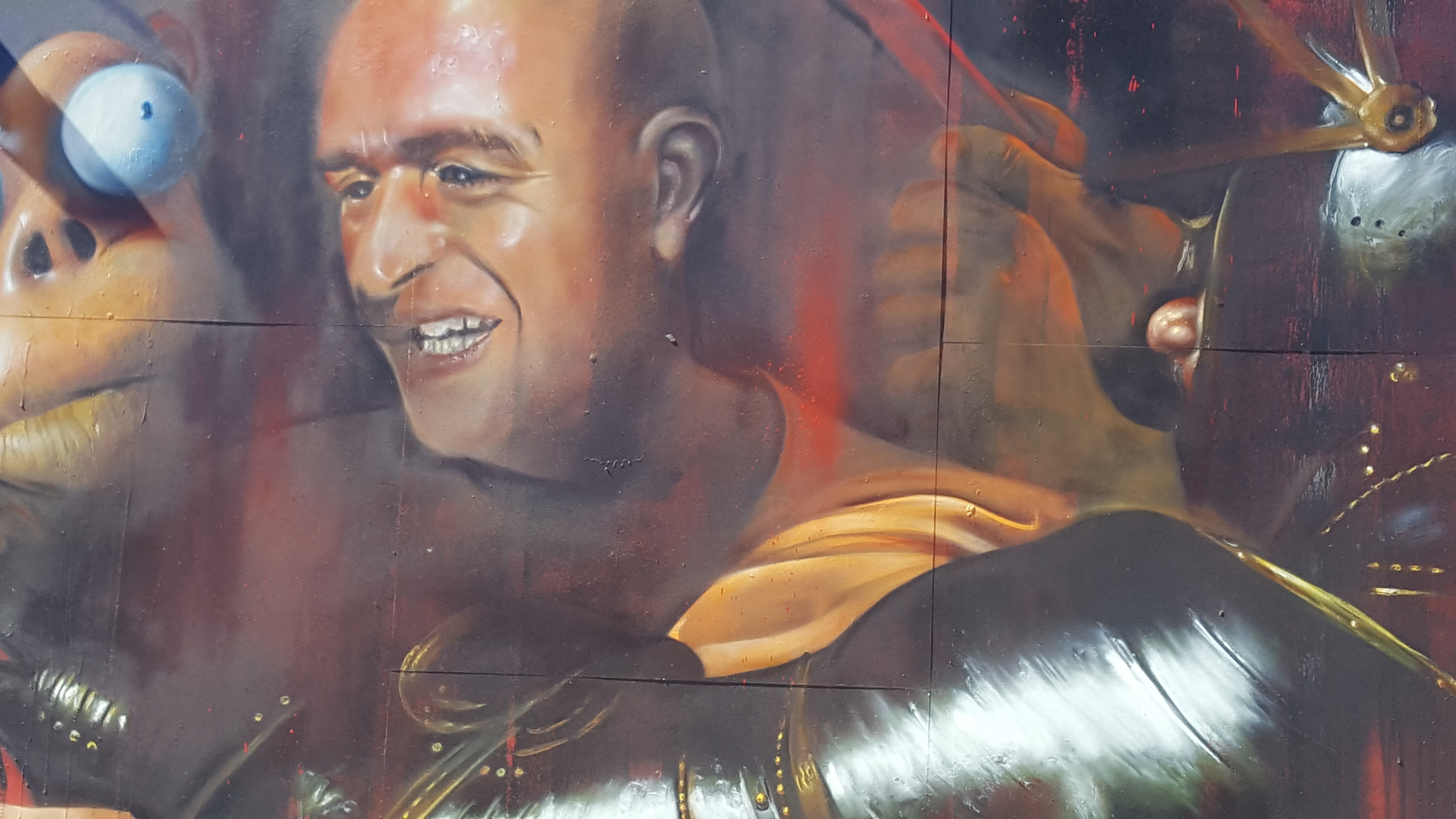 Even though it would be a creative anachronism, for a moment, I want them vandalised, called out for becoming commodities. This is even though ,or perhaps despite myself, you see I too bought one of his images, stitched onto a cap, (I did say it was hot out). Thus, even I succumbed. I can’t fight the forces of consumerism, either.