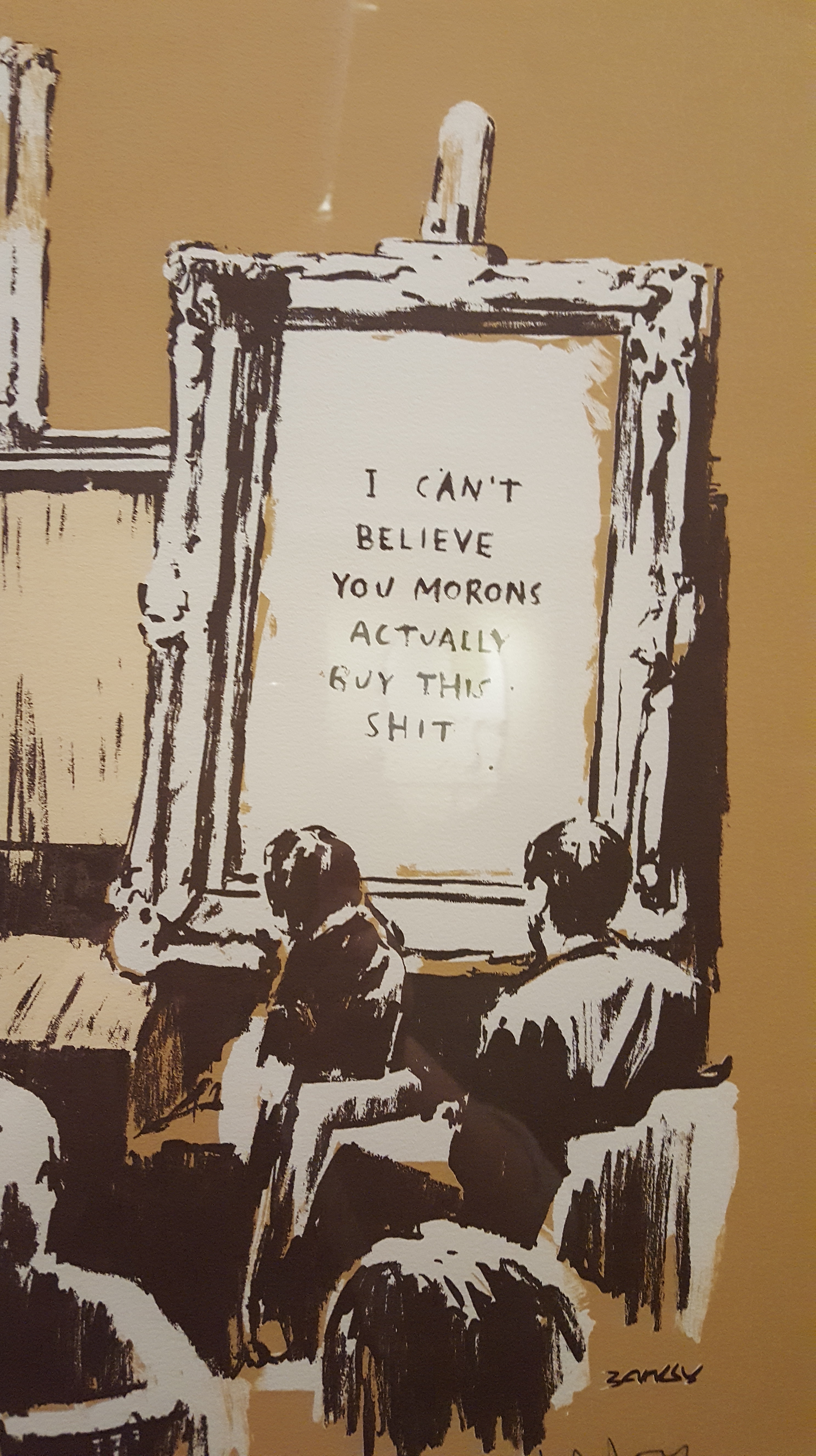 Yet here and now, for me, Banksy’s work is out-of-place. Just as the artist hasn’t approved this exhibit, a part of me baulks at this too. Then again, art where it is not meant to be, is exactly Banksy’s thing. See what I mean, grr? Questions without answers.
