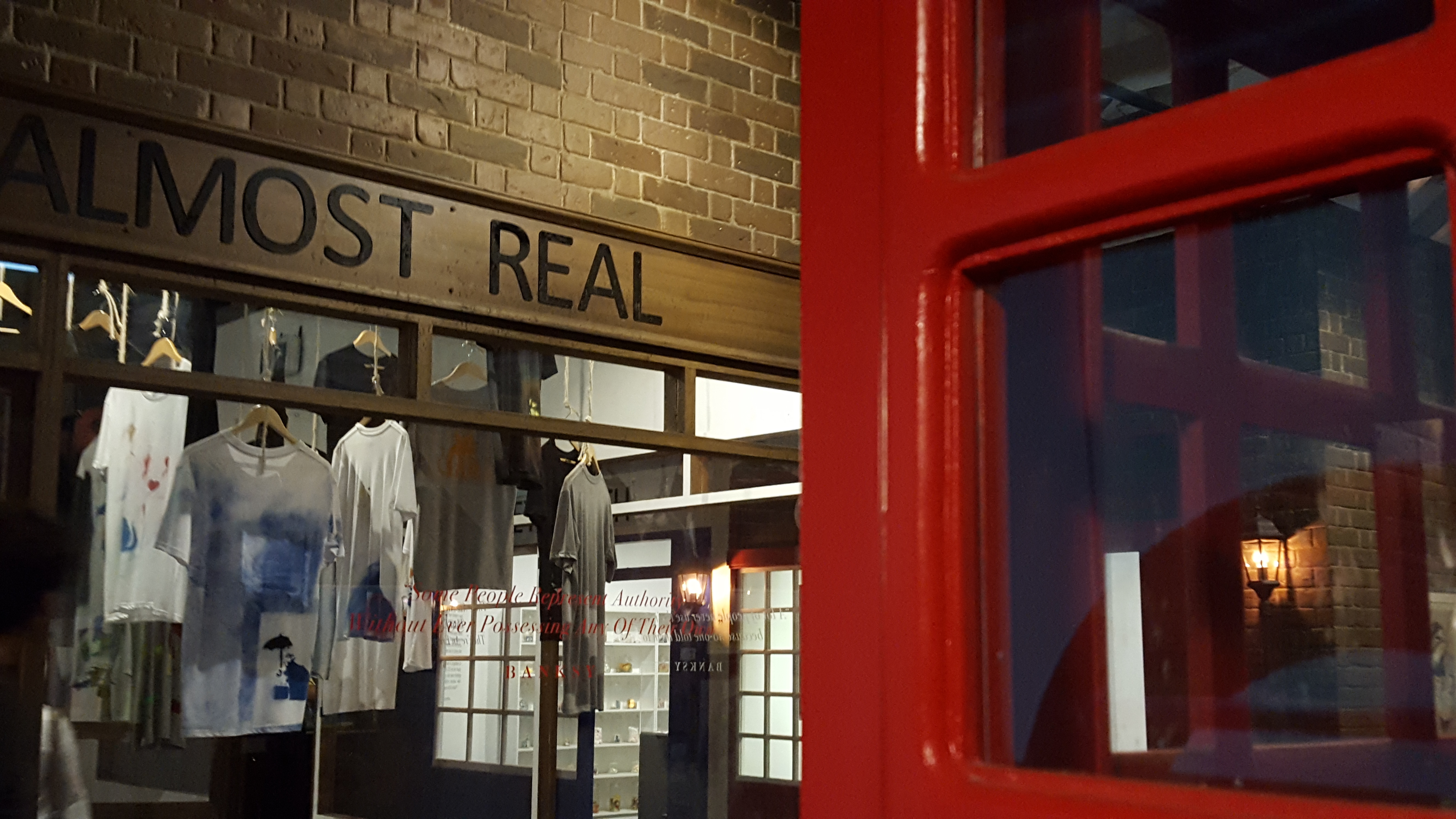 The cosy space featured many of Banksy’s by now iconic images, mostly as framed prints, or photographs of his work, in a gallery that attempted to imitate a darkened London street (red phone box and all). The air conditioning was welcome.