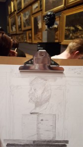 I longed to recapture the contentment, sitting in my Nan’s tiny cottage over a hot and mosquito filled January or several, listening to the steady too-ing and fro-ing thocks of the tennis while I painted, and painted. Instead, I found a new contentment, looking for views and angles as I wandered Melbourne’s CBD and lying on the parquet floor of the NGV, pencil in hand.
