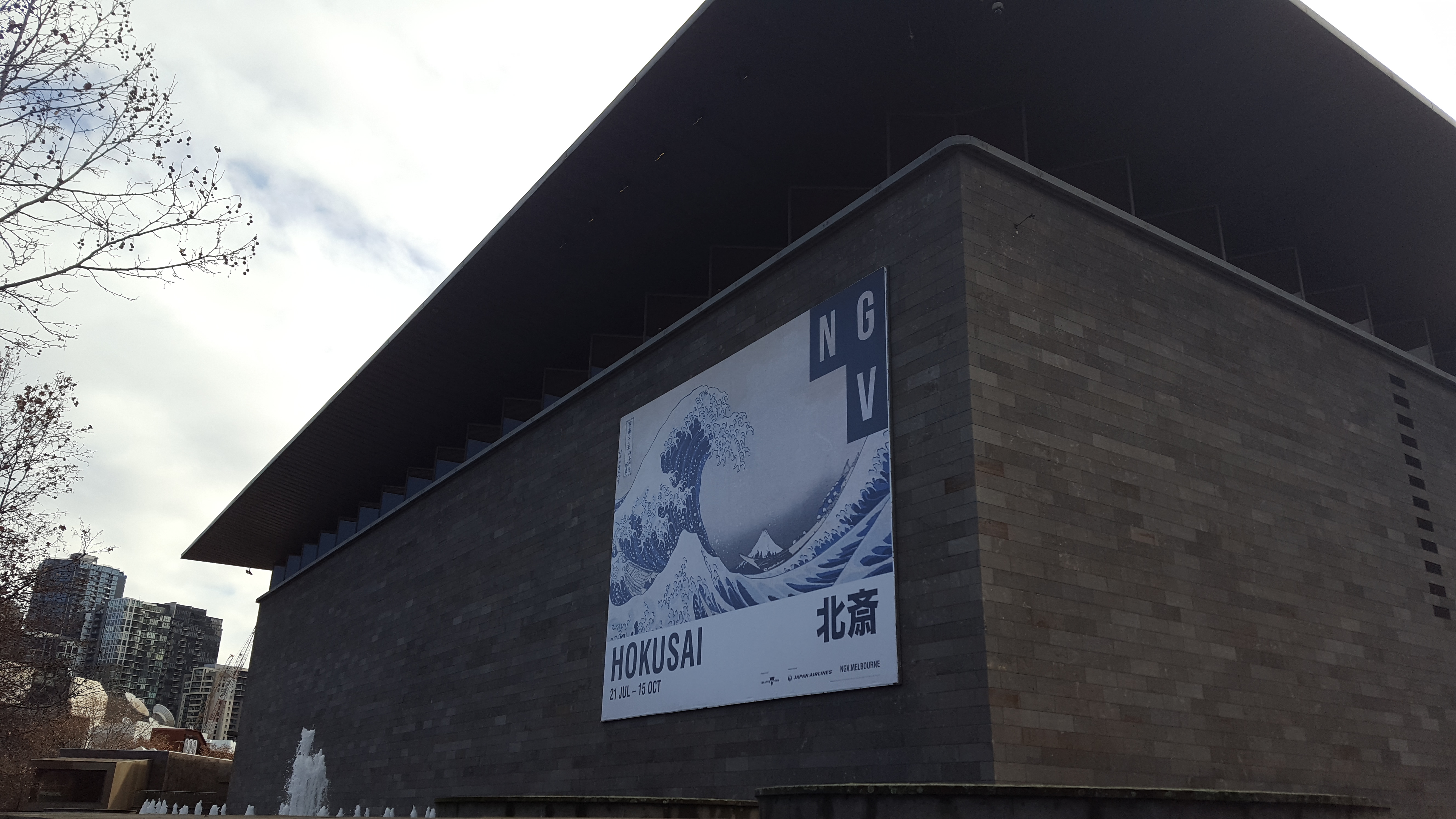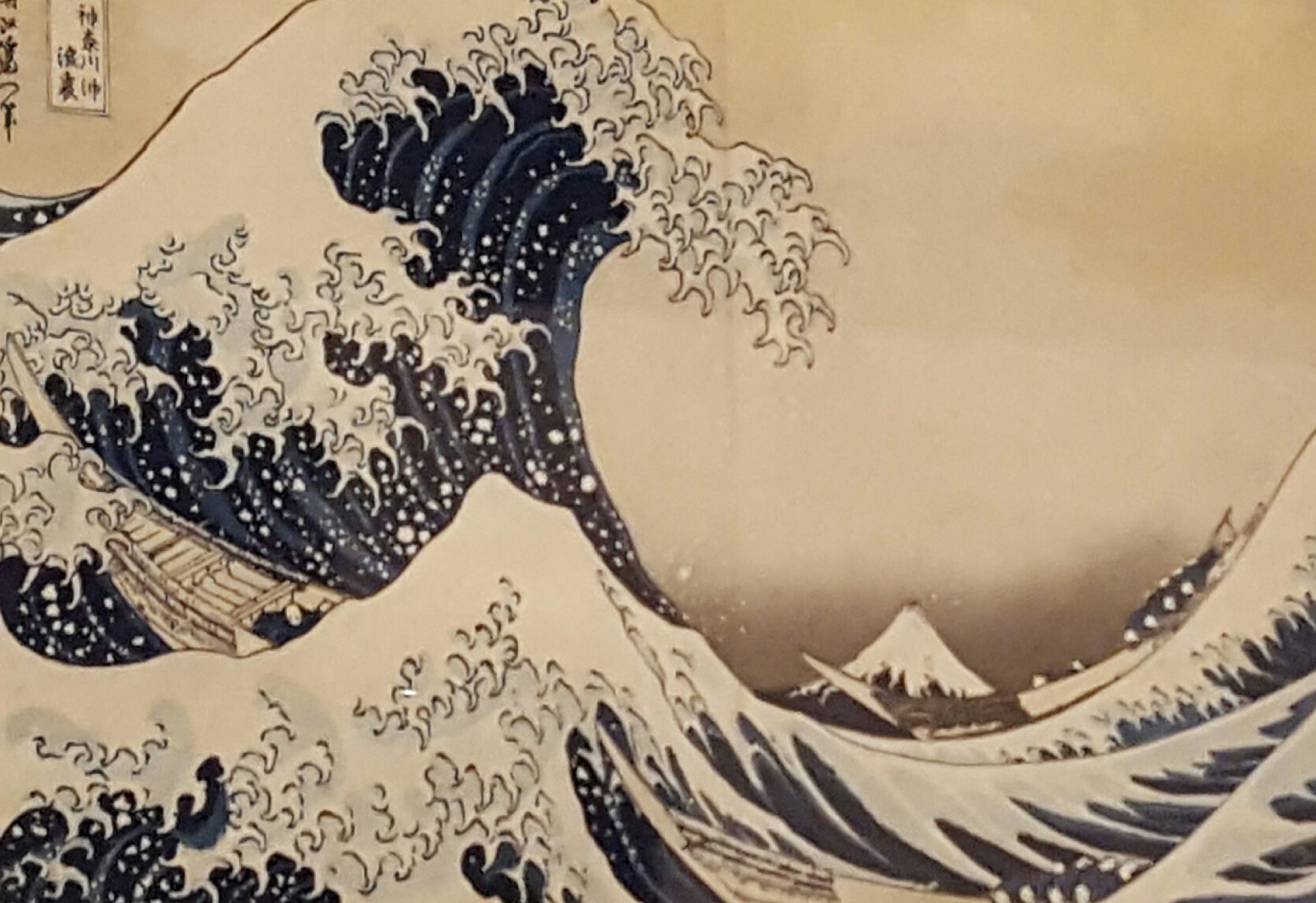 The National Gallery of Victoria is currently exhibiting more than 150 works of art (prints, books, manga, cloth items etc) by the Japanese artist Katsushika Hokusai. Even if you haven’t heard of him, you may know one of his pictures, because it is now one of the most famous and reproduced scenes in the world: The Wave, or as it is also known, The great wave off Kanagawa. And it is not just one picture. In this exhibit it is two of a kind.