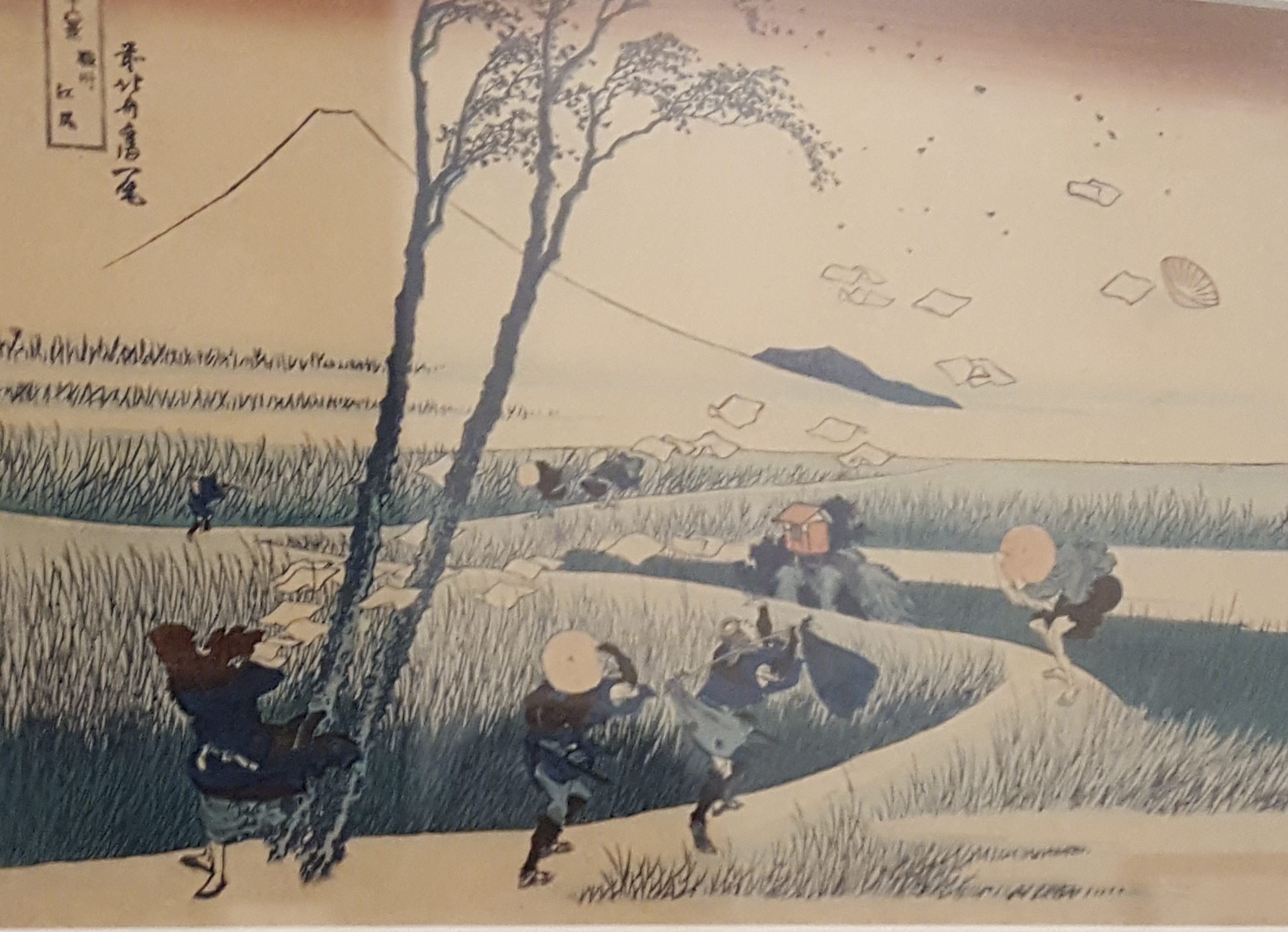 It is nice to stop and to watch people swaying and nodding between both images, comparing and contrasting them like a newspaper spot the difference puzzle. But beyond this area, there are different sections, some dedicated to his views of Mount Fuji, others to his illustrations of ghost stories, and depictions of flora and fauna, and the seasons. There is a kind of serenity to them, even when the woodblock prints show wind-tossed people losing their documents and hats.