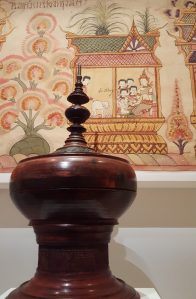 There are statues, worn by time, metal work figurines, betel items, and ceramics, along with newer interpretations of the figure of the Buddha, through painting and digital works. The one below, is quite striking: