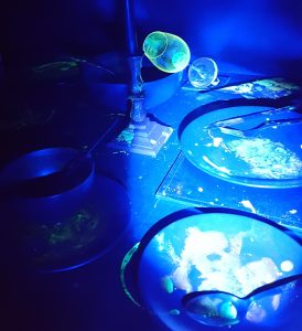 Whether blood ideas are used by racists, or whether blood becomes a tool of fear regarding health and society, it can unite and divide us. But this gallery shows even our differences can become complementary. In a kinetic work representing the blue blood of crabs balanced with red human blood, glass alembic-like chambers move so the two ‘bloods’ flow in response to each other.
