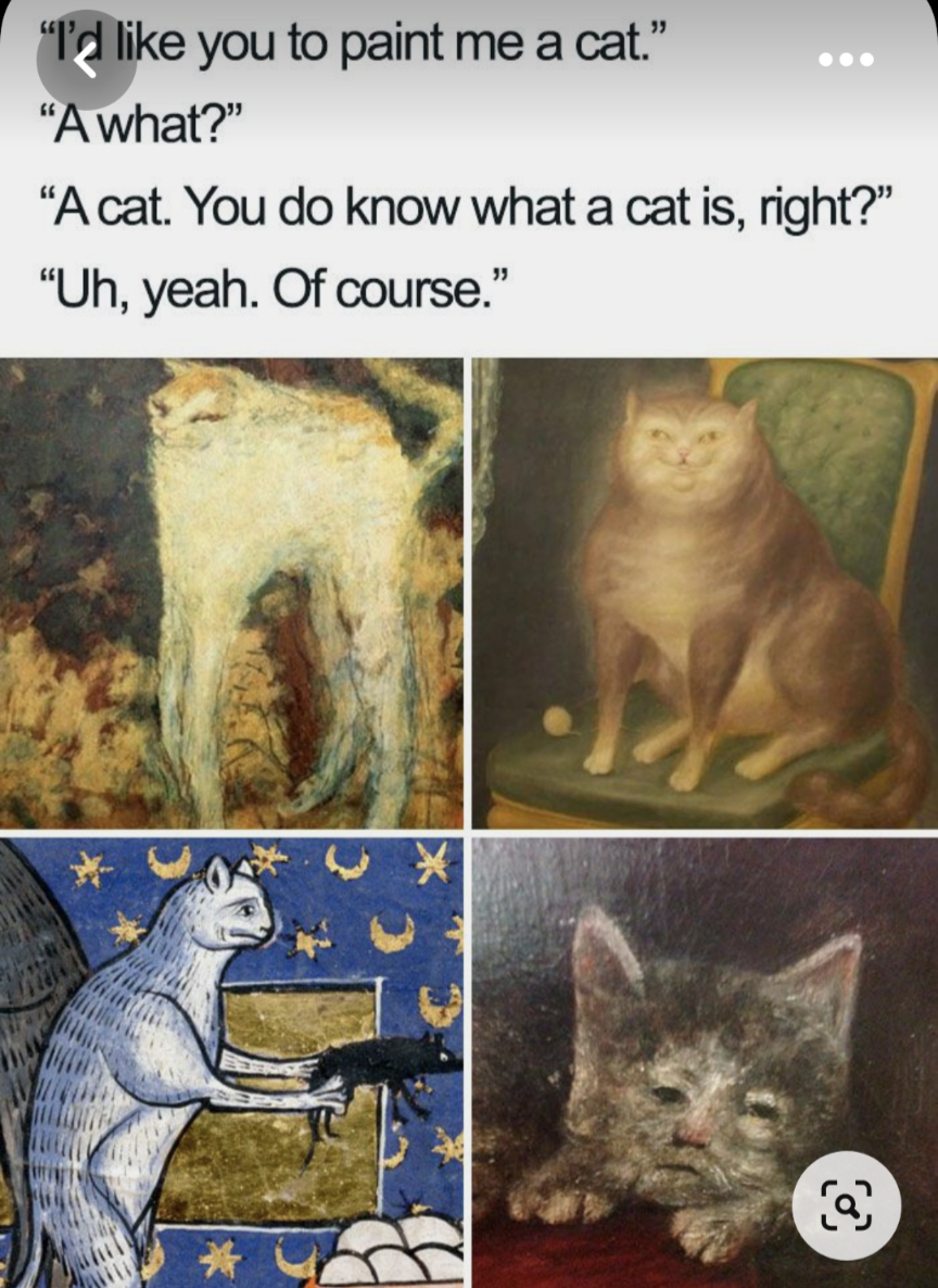It is ever thus, particularly with the artistic rendering of cats. There are so many opportunities for artists to get cats wrong and they all exist. Admittedly cats are fairly difficult to represent, but some artists don’t even seem to know where to start. Yet love all these bad cat pictures so much. All this brings me to trying out artificial intelligence art apps and asking them to depict cats. My theory is that if human artists can fail cats, so can AI…maybe?