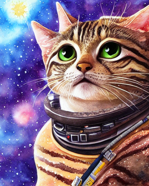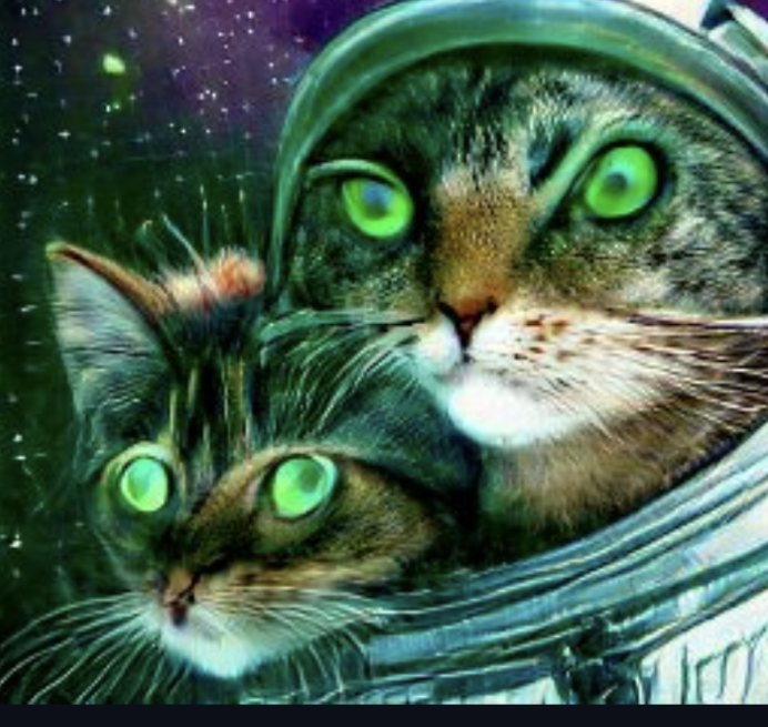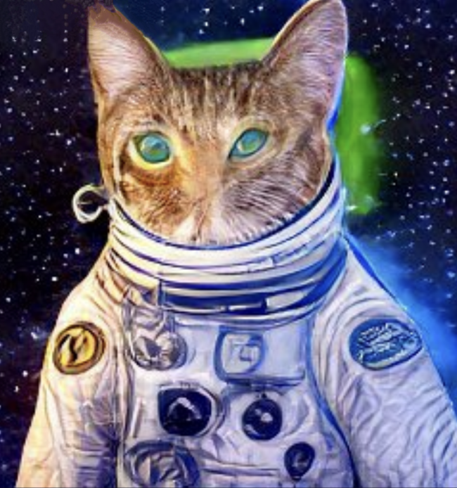 Thus, I present to you a selection of AI renderings of galactic astronaut tabbies, because I had to input something and I wanted the cat to stand out on the background. Some images are more successful than others but mostly I believe they look more like cats than not-cats. At least they are not cats with human faces, however, I was expecting a touch more uncanny valley. I suppose some images are a little odd, but not quite as successfully disturbing as the human created cat paintings, especially those ones which are basically sad human faces with cat ears and fur. I don’t know if any of this is a win for cats, for cats in art, or AI art cats, but time may tell.