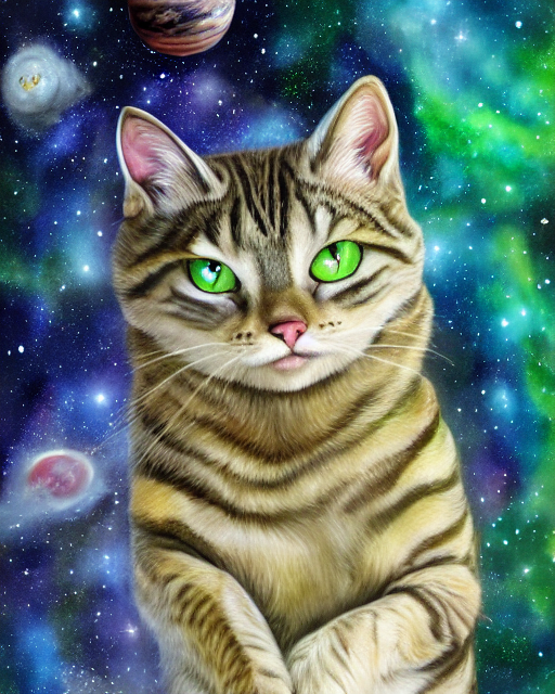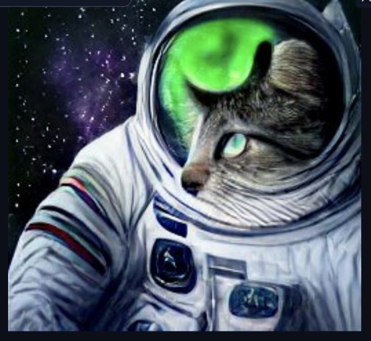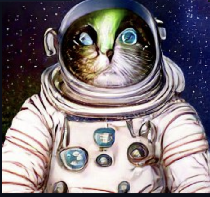 Thus, I present to you a selection of AI renderings of galactic astronaut tabbies, because I had to input something and I wanted the cat to stand out on the background. Some images are more successful than others but mostly I believe they look more like cats than not-cats. At least they are not cats with human faces, however, I was expecting a touch more uncanny valley. I suppose some images are a little odd, but not quite as successfully disturbing as the human created cat paintings, especially those ones which are basically sad human faces with cat ears and fur. I don’t know if any of this is a win for cats, for cats in art, or AI art cats, but time may tell.